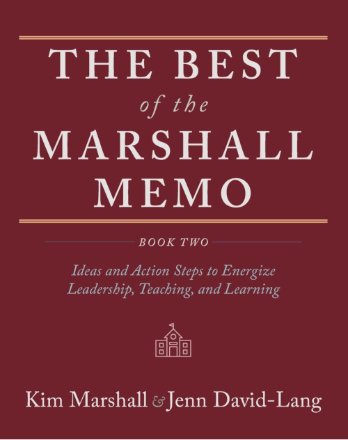 “The history of American education is littered with examples of silly fads spreading far and wide while common sense and evidence-based practices remain stuck within the four walls of a classroom. The Marshall Memo breaks this tradition by giving educational leaders and their teams the best advice and analysis from around the nation and around the world. And in The Best of the Marshall Memo: Book Two, Kim Marshall and Jenn David-Lang give us the very best ideas and research from the Memo’s seventeen years.”